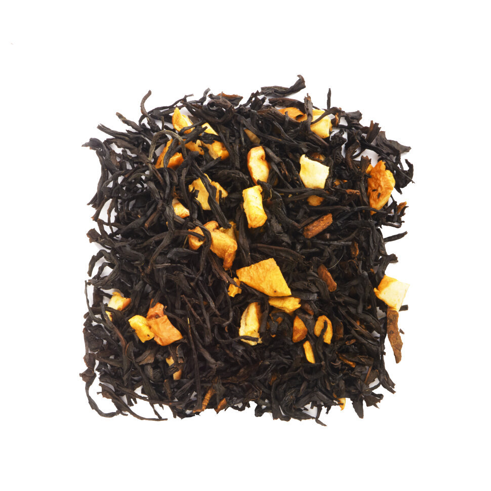 В состав чая "Яблочный штрудель" входят премиальные сорта индийского чёрного чая, кусочки сушеного яблока, корица, ароматизатор.