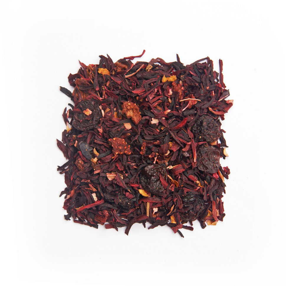 каркаде, изюм, плоды шиповника, цельные ягоды ежевики, кусочки ягод клубники и ароматические масла