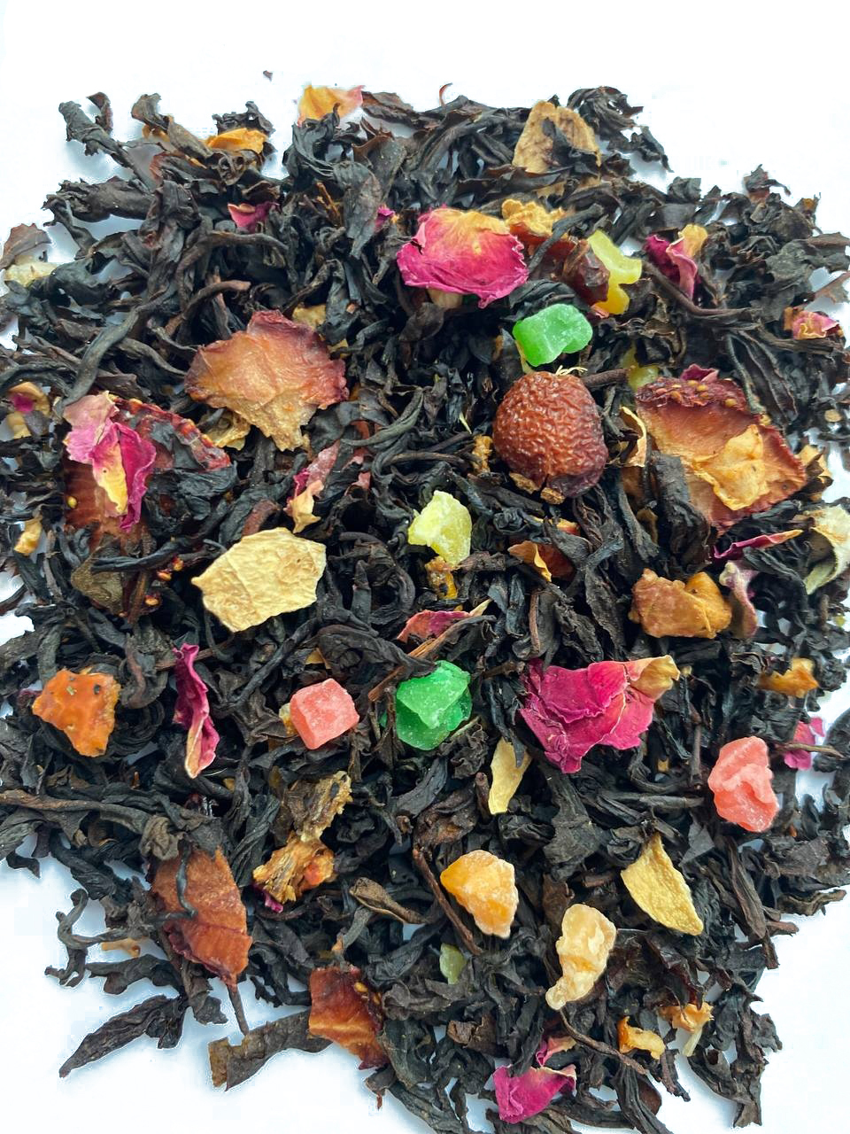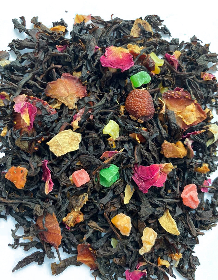 Индийский чай ОРА, цукаты, яблоко, лимон корка, шиповник кожура, роза лепестки, клубника ,аромат клубники и персика
