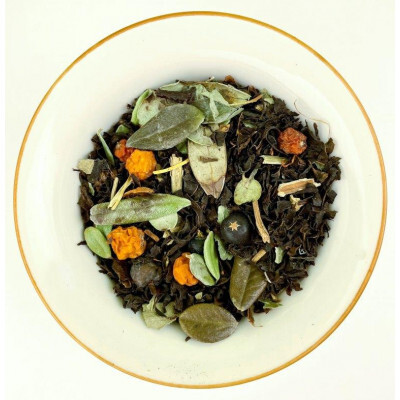 Черный чай, рябина, земляника лист, брусника лист, ягоды можжевельника, черноплодная рябина