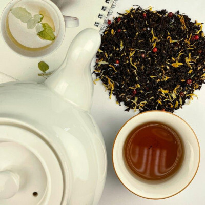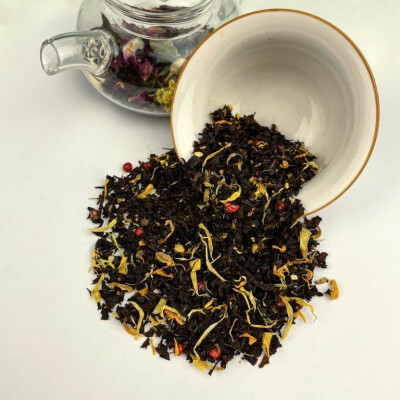 черный чай, имбирь, розовый перец, календула, с ароматом "мед"