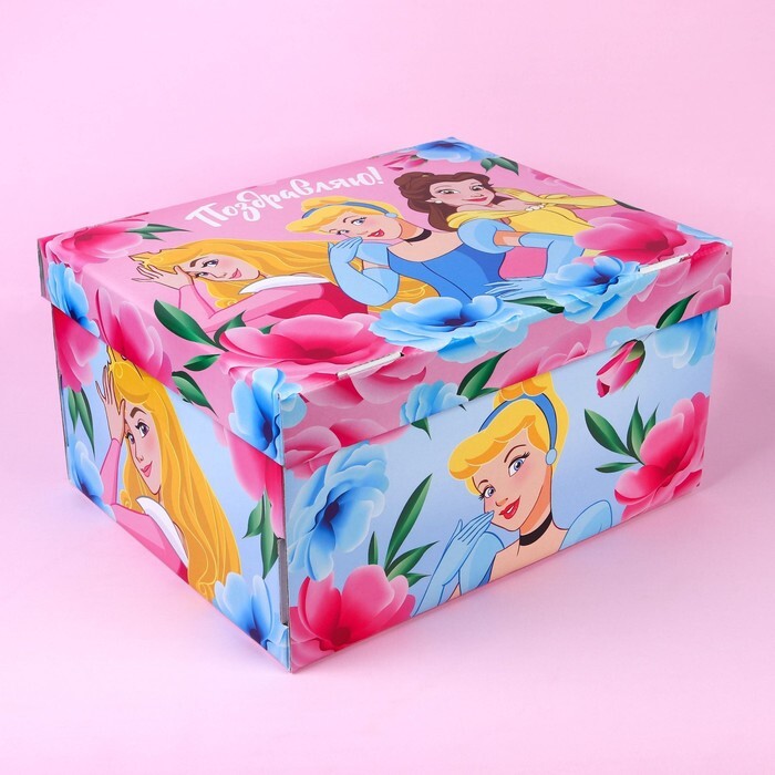 Коробка подарочная складная с крышкой "Поздравляю!", 31х25,5х16, Принцессы
