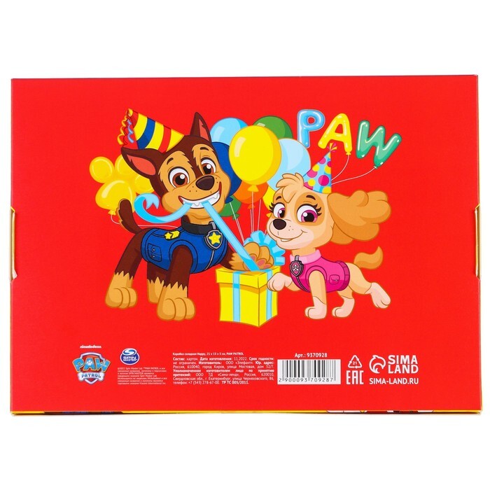 Коробка складная "Happy", 21 х 15 х 5 см, Щенячий патруль