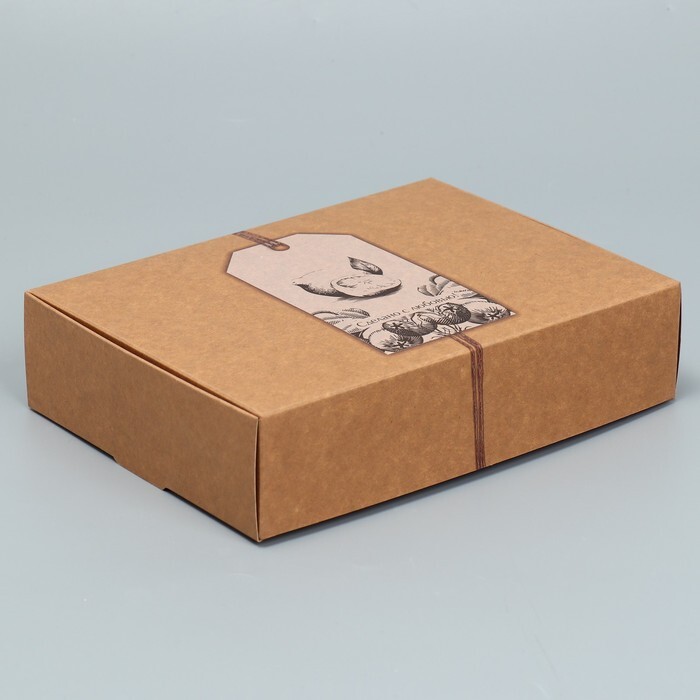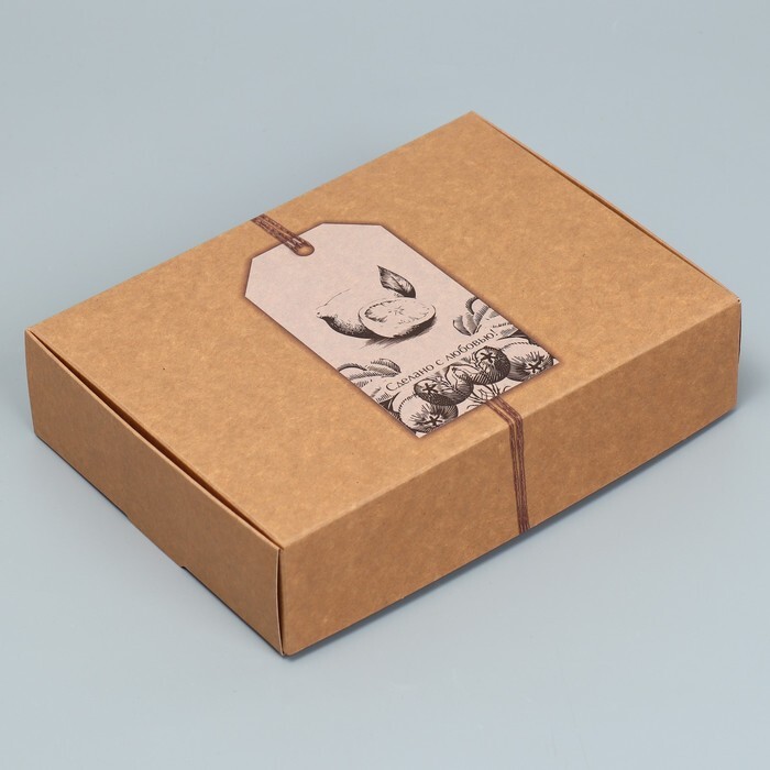 Коробка складная крафтовая «Сделано с любовью», 21 × 15 × 5 см