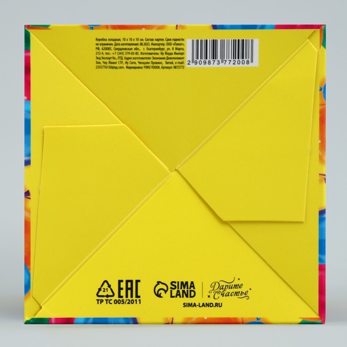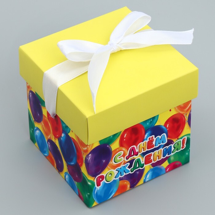 Коробка складная «С днем рождения», 10 × 10 × 10 см