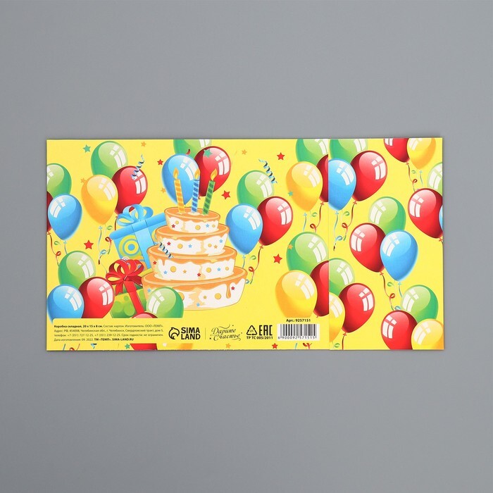 Коробка складная «С днем рождения», 20 × 15 × 8 см