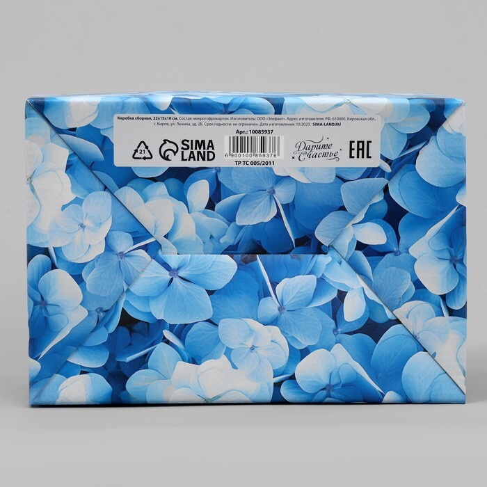Коробка складная «Цветущая гортензия», 22 х 15 х 10 см