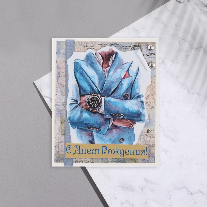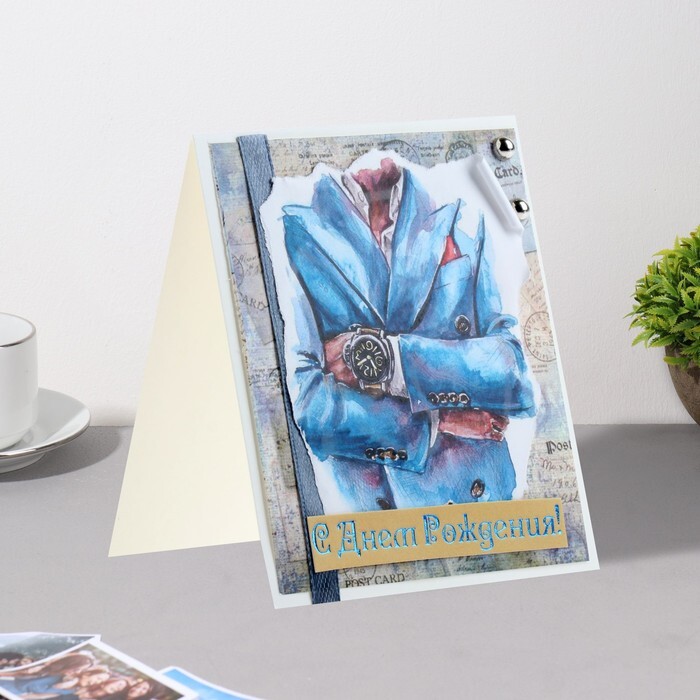 Мини-открытка "С Днём Рождения!" дек. элемент, костюм, 9,5х8 см