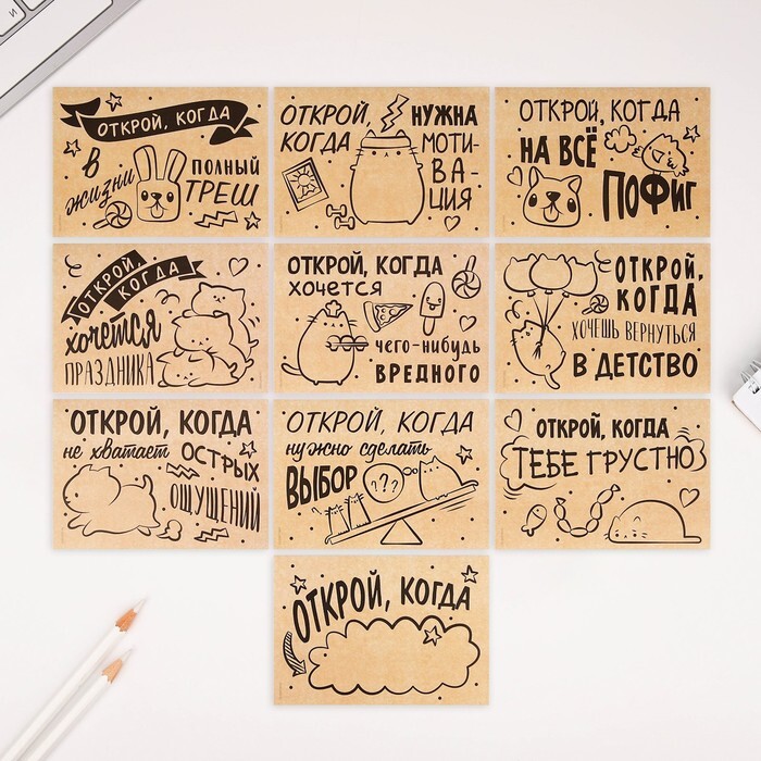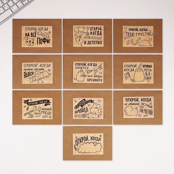 Набор конвертов «Открой, когда...» (Крафт), 10шт., 16 х 11,5 см