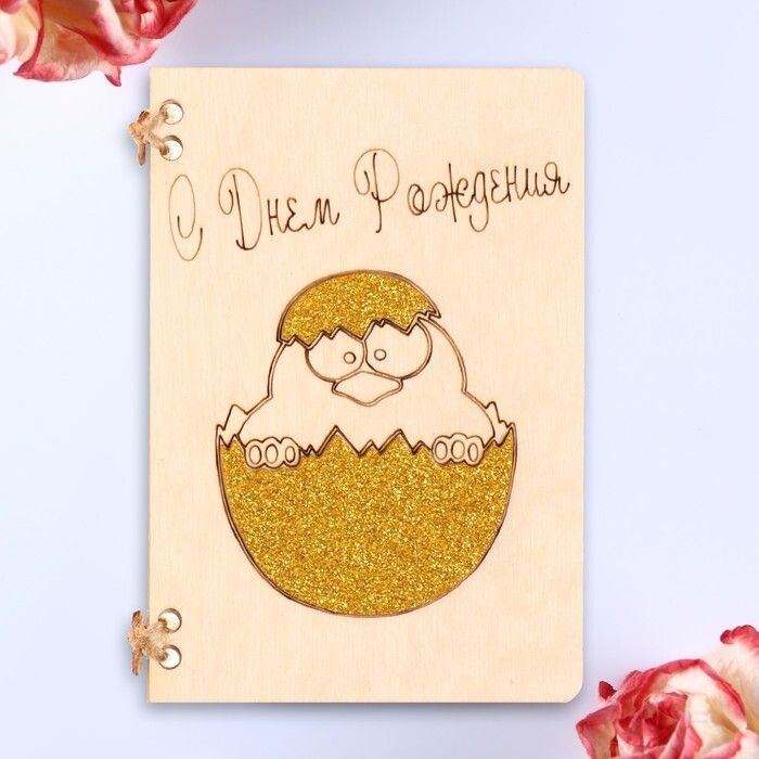 Открытка деревянная "С Днём Рождения!" ручная работа, яйцо