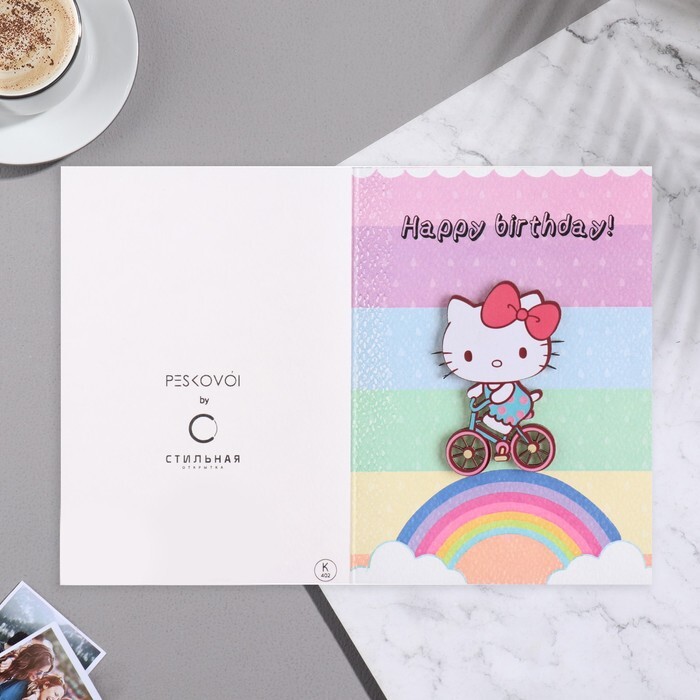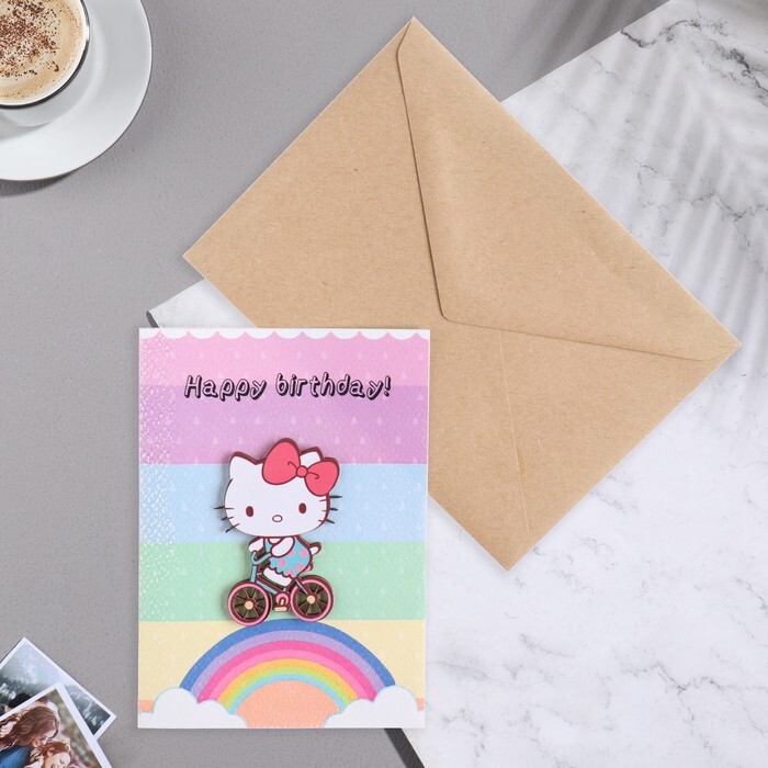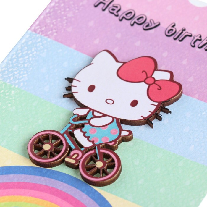 Открытка с деревянным элементом "Happy Birthday!" ручная работа, велосипед, 14,7х10,5 см