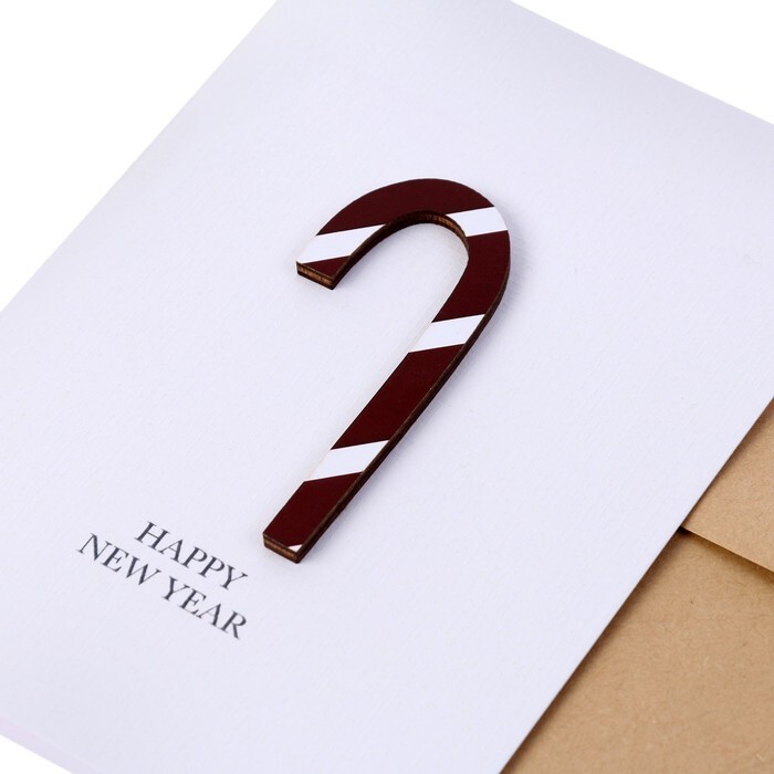 Открытка с деревянным элементом "Happy New Year!" ручная работа, трость, 14,7х10,5 см