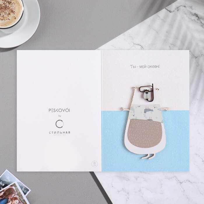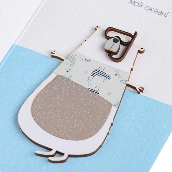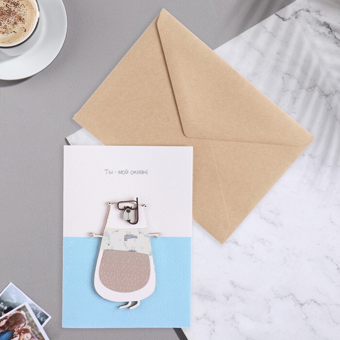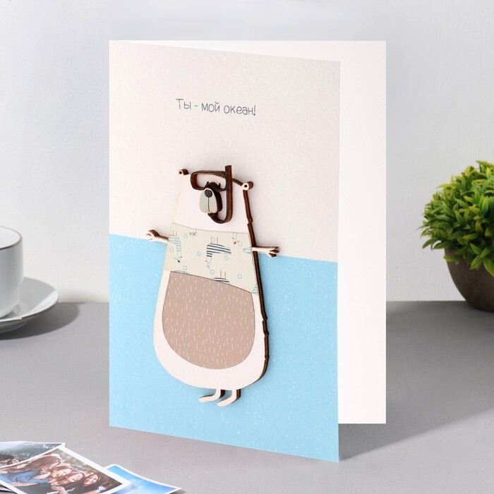 Открытка с деревянным элементом "Ты - мой океан!" ручная работа, вода, 14,7х10,5 см