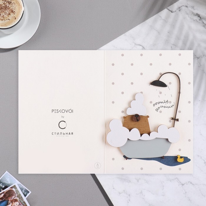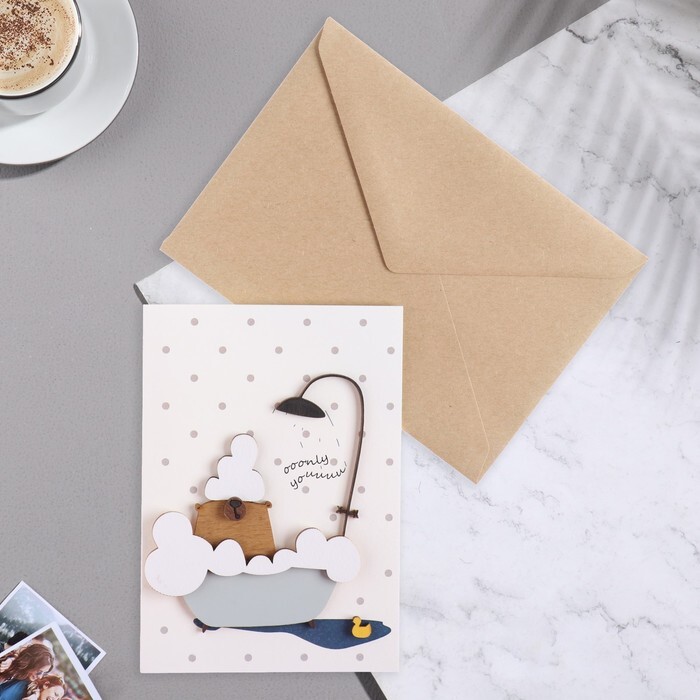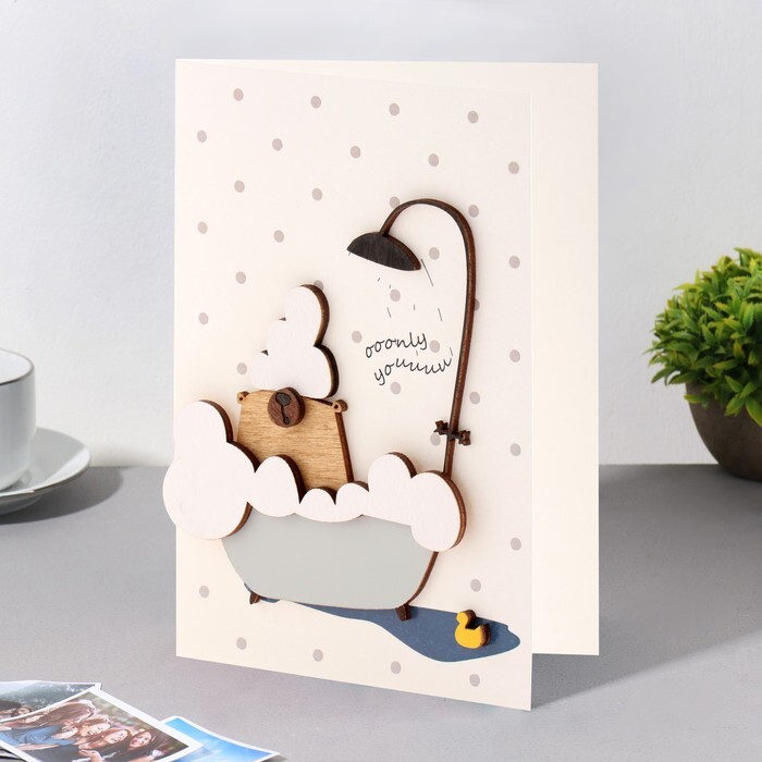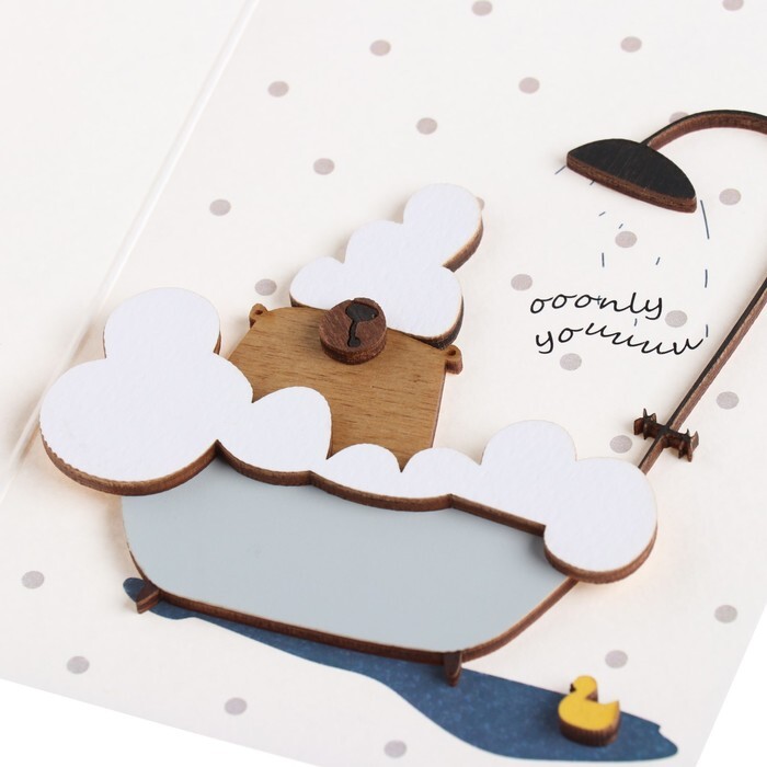 Открытка с деревянным элементом "Универсальная" ручная работа, душ, 14,7х10,5 см