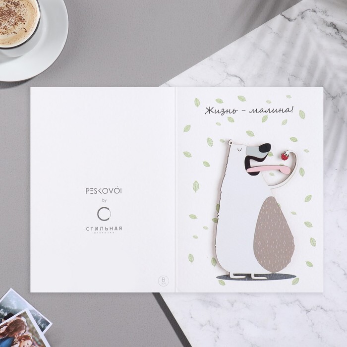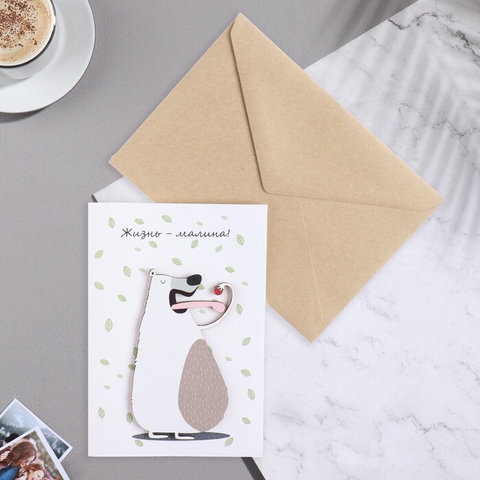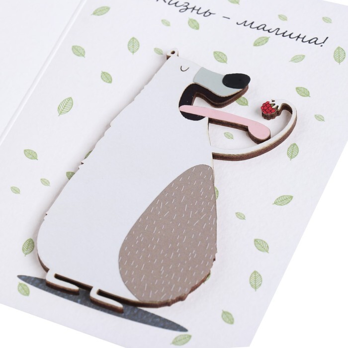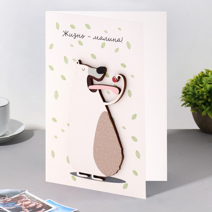 Открытка с деревянным элементом "Жизнь - малина!" ручная работа, 14,7х10,5 см