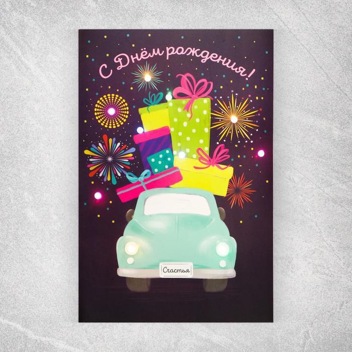 Открытка с гирляндой «В День Рождения», 14 х 21 х 0,3 см