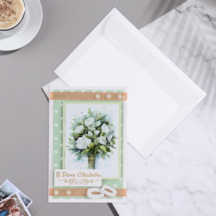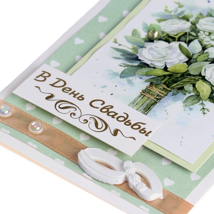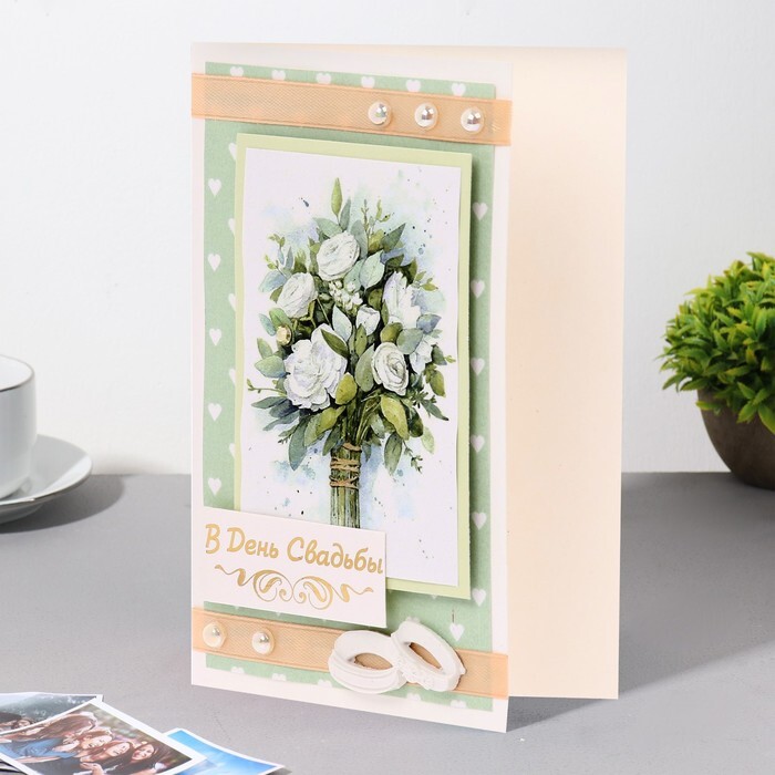 Открытка "В День Свадьбы!" ручная работа, белые розы, 11,5х17 см