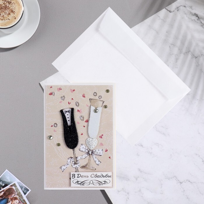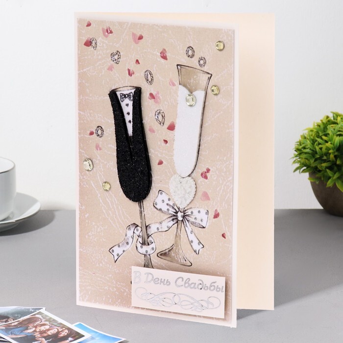 Открытка "В День Свадьбы!" ручная работа, бокалы ,11,5х17 см