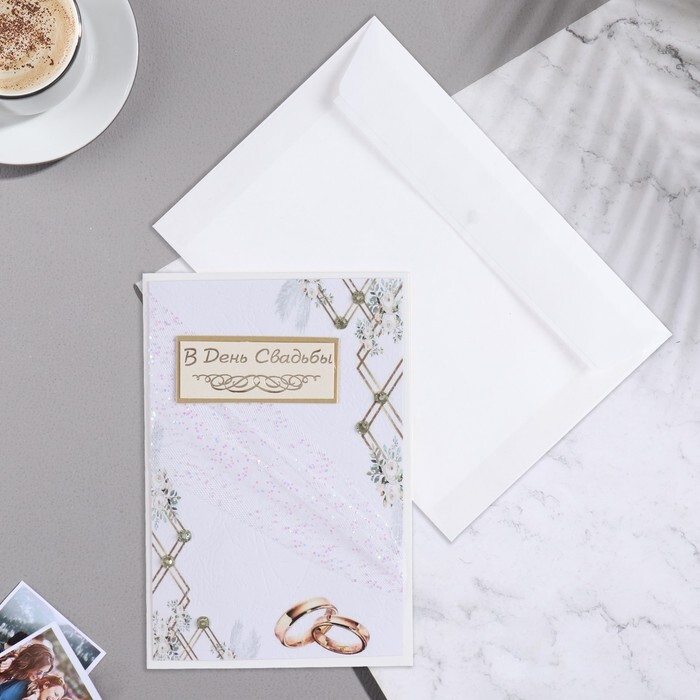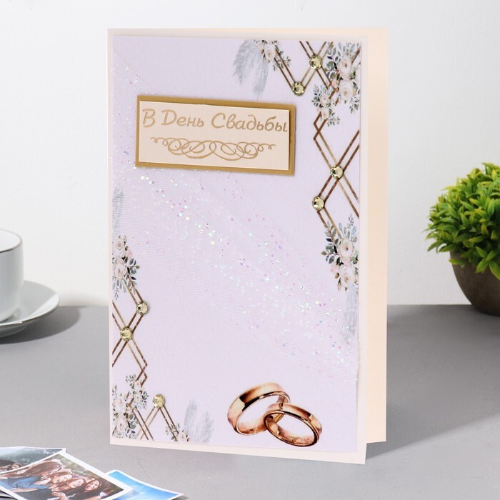 Открытка "В День Свадьбы!" ручная работа, кольца, 11,5х17 см