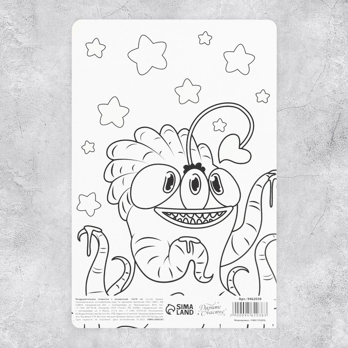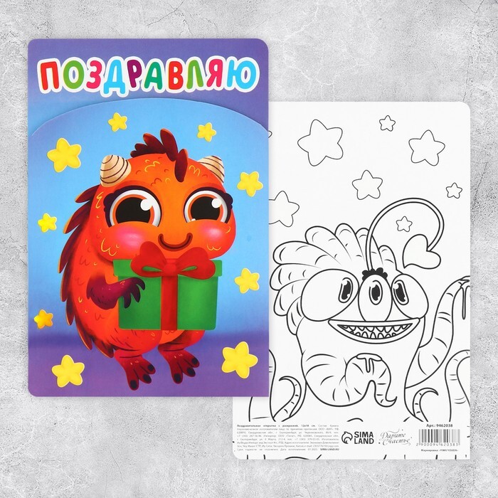 Поздравительная открытка с раскраской «Поздравляю», монстрики, 12 × 18 см