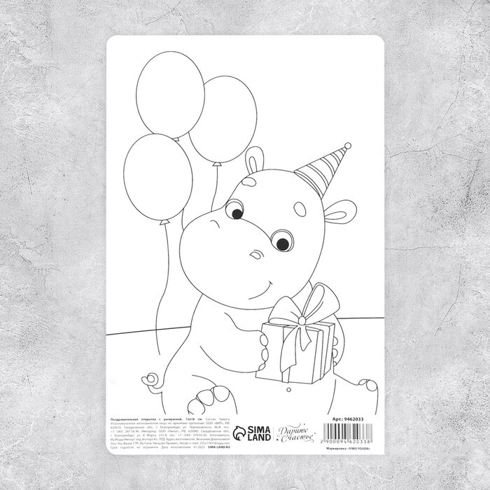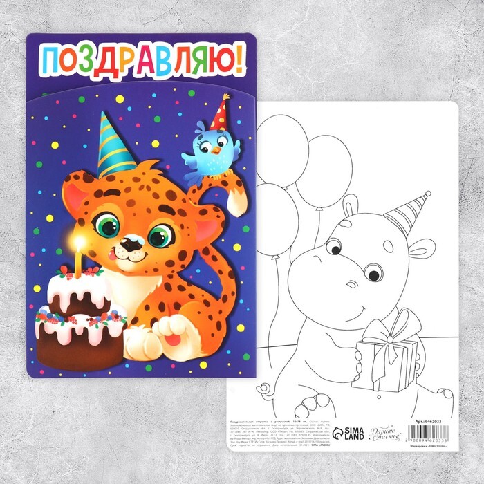 Поздравительная открытка с раскраской «Поздравляю», животные, 12 × 18 см