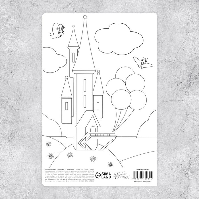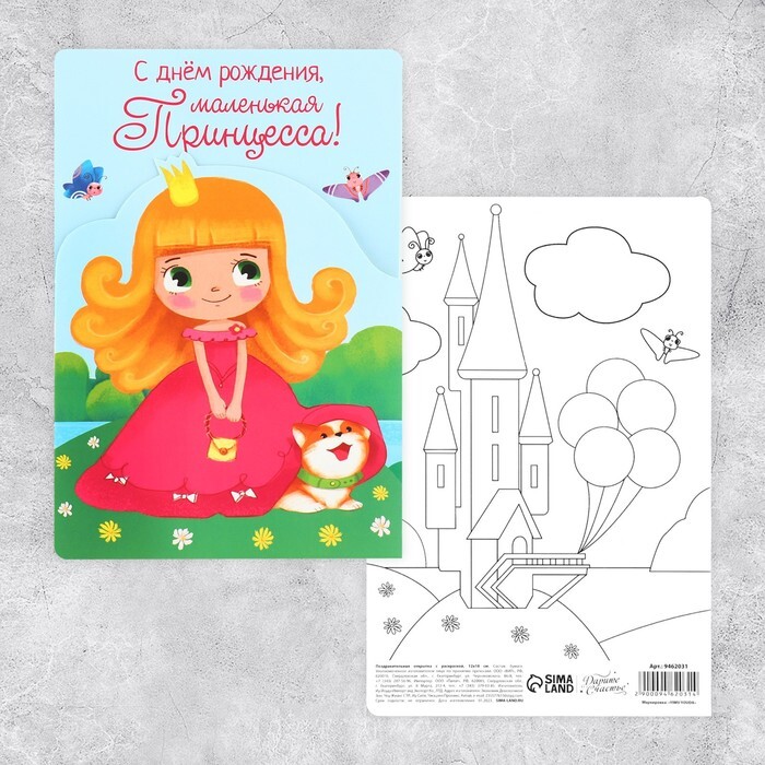 Поздравительная открытка с раскраской «С Днём рождения», принцесса, 12 × 18 см