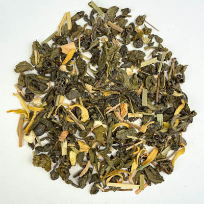 зеленый чай, Лемонграсс, листья апельсина, корка апельсина, корень имбиря, с ароматом "Апельсин"